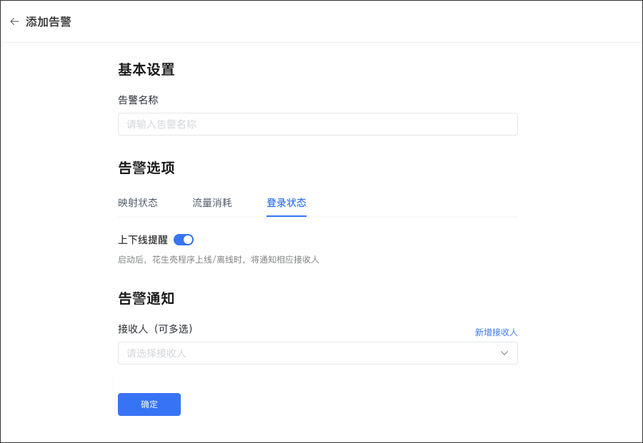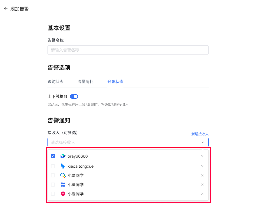 Turn on the online and offline reminders and select the recipient of the alarm notification. If the Aweshell program is online/offline, an alarm notification will be pushed to the recipient. !