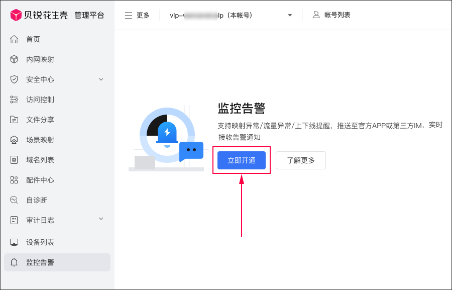 Log in to Aweshell Management Platform, select the [Monitoring and Alarms] module, and click