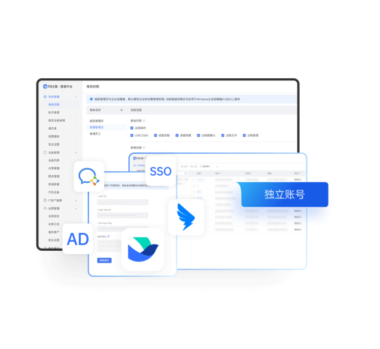 At the same time, the scheme supports docking with third-party IM accounts (enterprise micro, DingTalk, flying book), and employees can scan the code and log in with one key. If the privatization deployment service is used, AD domain access is also supported. Enterprises can efficiently connect remote office solutions to existing systems and automatically synchronize with existing organizational structures without manual construction.