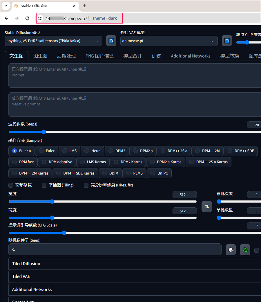 (3)映射添加完成,可使用外網地址訪問部署的Stable Diffusion web UI。 !