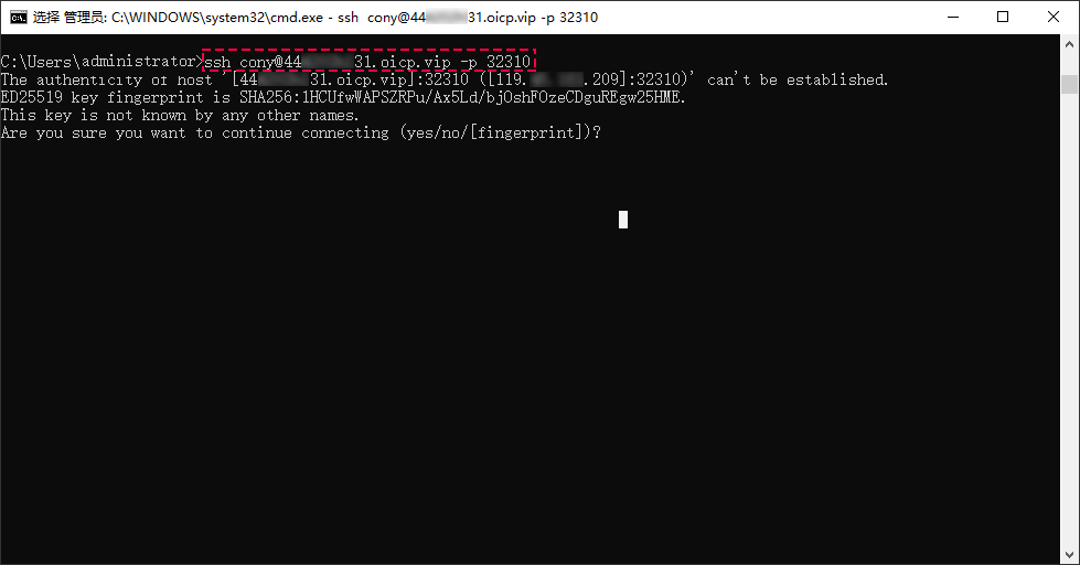 複製外網地址黏貼至命令提示符窗口,執行'用戶名@外網地址 -p 外網端口號',即可連接已開啟SSH服務的電腦。 !